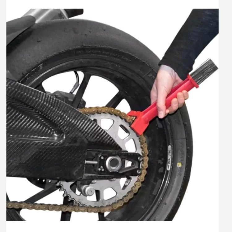فرچه مناسب زنجیر موتور سیکلت واجب است برای نرمی روان بود زنجیر و بالا رفتن طول عمر زنجیر موتور سیکلت و خورشیدی هر دو هفته یکبار زنجیر و خورشیدی موتور سیکلت تمیز بشود و روغن کاری بشود