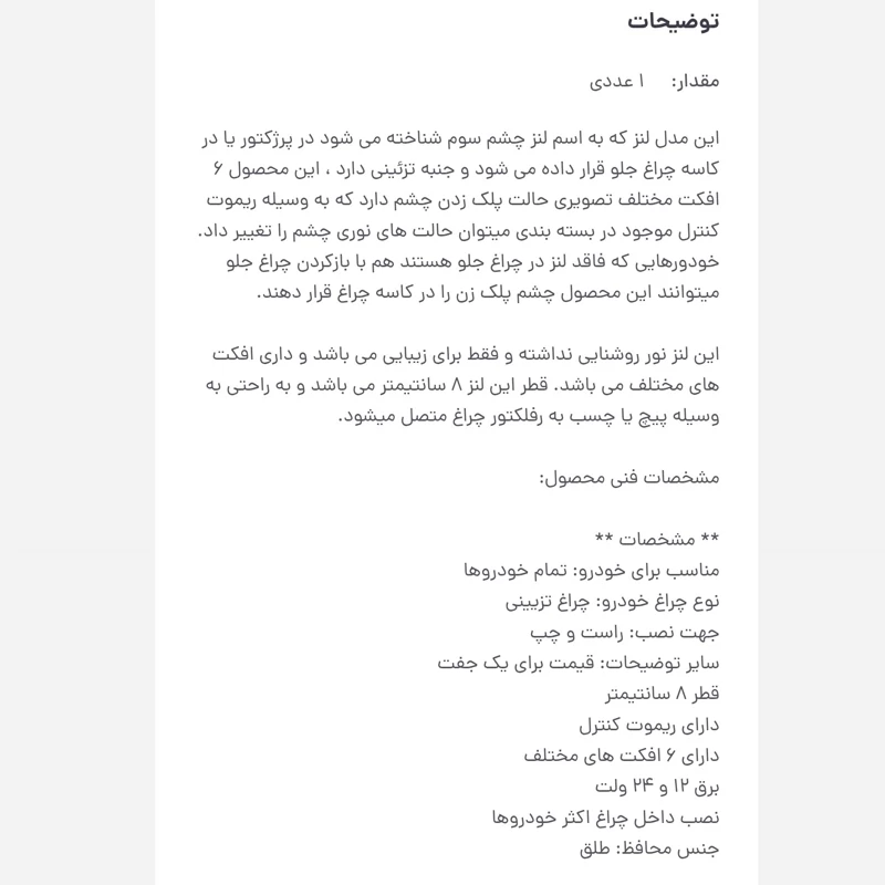 چشم سوم ماتریکسی اتومبیلی چهار حالته بسته دو عددی
