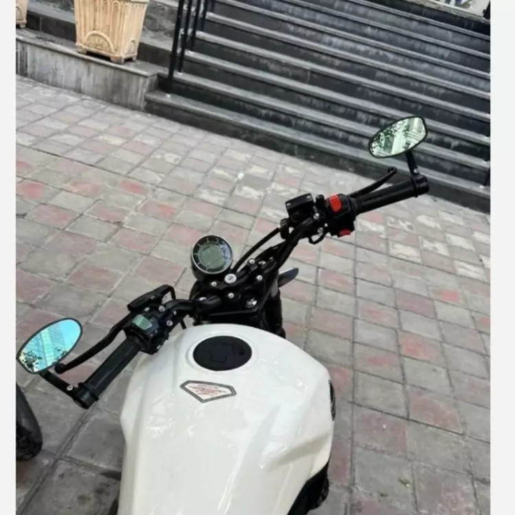 آینه سر فرمانی وارداتی درجه یک تمام فلز کیفیت عالی رنگ ضد خش مقاوم در برابر فشار باد و سرعت های بالا نصب آسان ب همراه آچار مخصوص رنگ نود پنج درصد مشکی است فقط وزنه هایه سر فرمان آن رنگ آبی و طلایی و قرمز است